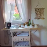 The villa provides tea and coffee making equipment, as well as a kitchen with a microwave oven, a refrigerator, and glassware.